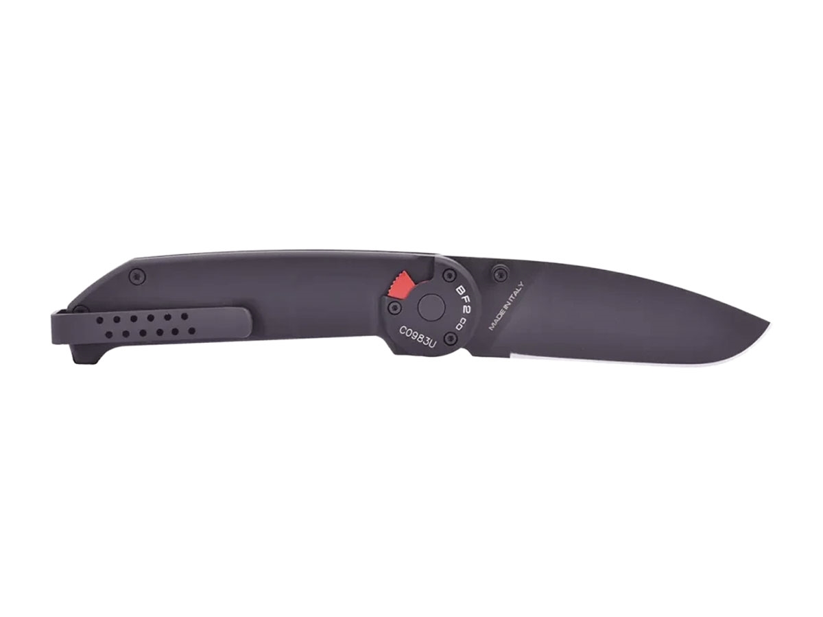 Il BF2 è un chiudibile "full size" particolarmente indicato per l'impiego professionale da parte di operatori militari e di polizia sul campo. L'impugnatura è salda e confortevole; la clip, reversibile ed avvolgente, diventa un utile e comodo appoggio per il pollice in "reverse grip". La guancetta è piena con i caratteristici piani ribassati per impegnare i "pin" d'apertura senza che sporgano dal profilo del coltello chiuso. La lama, disponibile in versione drop o tanto, ha l'arrotatura piatta e, come nel BF1, la punta particolarmente spessa e resistente. Il meccanismo di blocco della lama è il collaudato LINER-LOCK, coadiuvato da un meccanismo di sicura da azionare manualmente protetto da un carter.