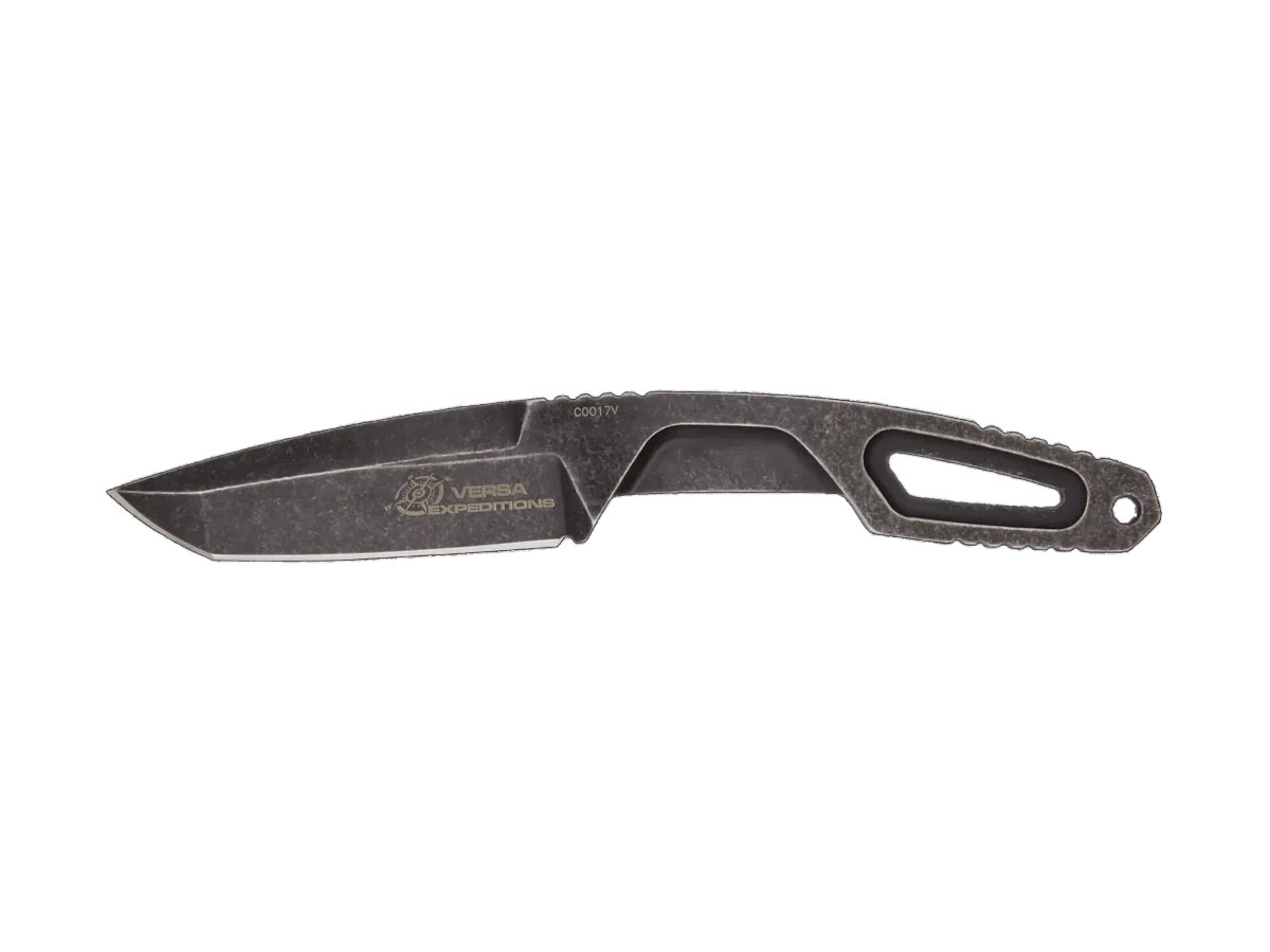 Versa combina un design innovativo con una funzionalità senza pari. Il nome "Versa" incarna perfettamente le caratteristiche di questo coltello: la sua versatilità lo rende adatto a una varietà di situazioni, mostrando la sua adattabilità sia in ambienti urbani come coltello EDC (Every Day Carry), sia in contesti più avventurosi come outdoor, survival, bushcraft, hunting e persino in scenari tattici. La lama è realizzata in acciaio Böhler N690 trattato termicamente a 58 HRC: presenta una brunitura MIL-C-13924 e una finitura stone washed (Dark Stone). Versa Expeditions è fornito con un fodero in kydex termoformato di colore desert sul quale è possibile agganciare il Firesteel per accendere i fuochi (incluso nella confezione). La struttura full-tang scheletrata consente all'utente di personalizzare il manico rivestendolo con paracord, ampliando ulteriormente le possibilità di utilizzo e personalizzazione del coltello. In modalità neck knife Versa può essere facilmente indossato al collo tramite un cordino in paracord 550. Inoltre, può essere portato alla cintura grazie a una belt clip (opzionale) oppure agganciato a tasche, pantaloni, giubbotti e camicie tramite l'uso di una o più ULTICLIP (opzionali). Entrambe le soluzioni consentono il porto sia a mancini che a destrorsi. E' anche possibile agganciare il fodero al sistema MOLLE.