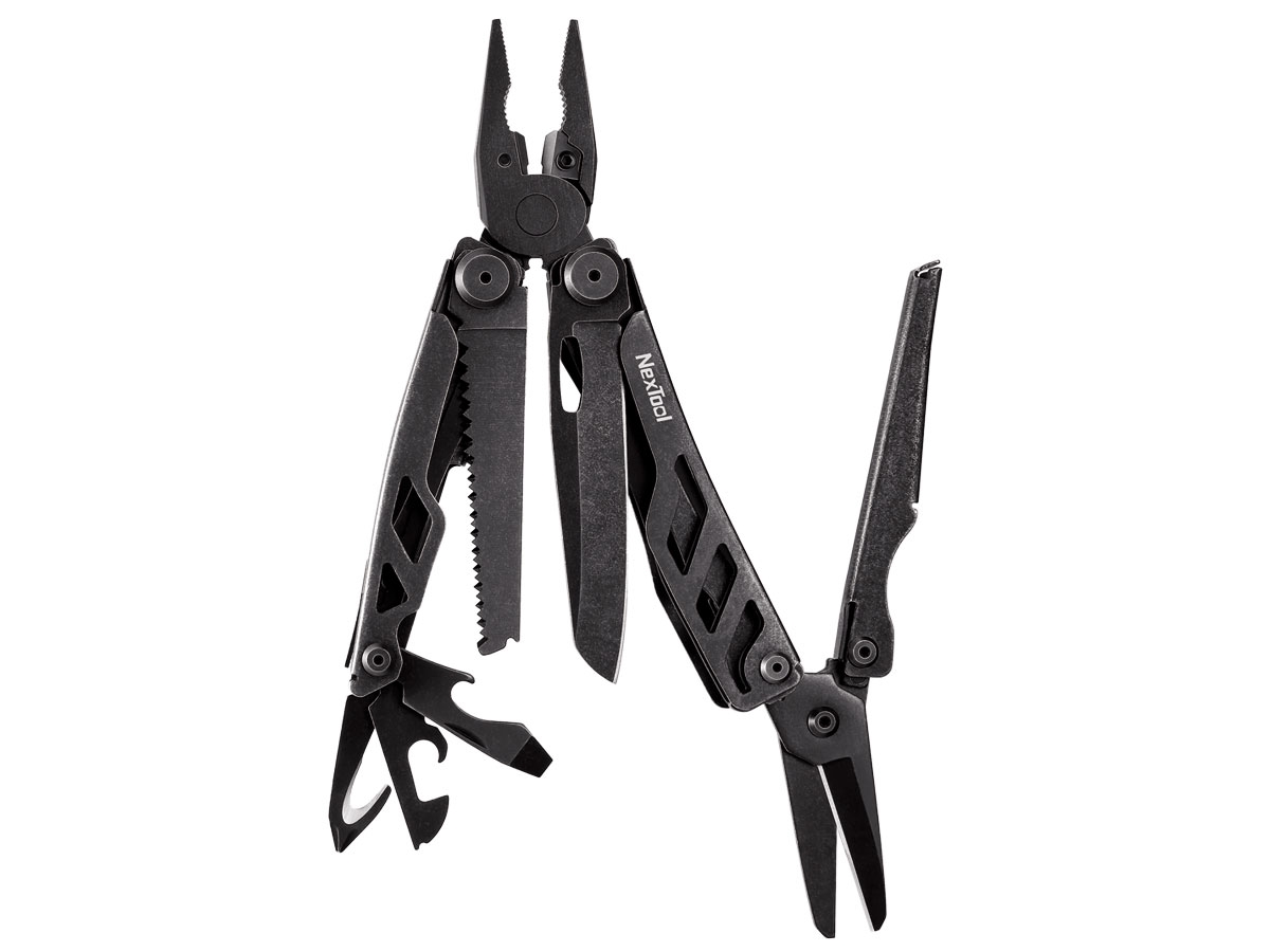 16 in 1: Pinze a becchi lunghi e normali, tronchesi YG8, forbici (dimensioni standard), coltello, sega, cacciavite a croce e a taglio, righello, apriscatole e apribottiglie, tronchese, spellafili, rompivetro e altro ancora. Realizzati in acciaio inossidabile temprato con sufficiente durezza e tenacità, antiruggine e anticorrosione.