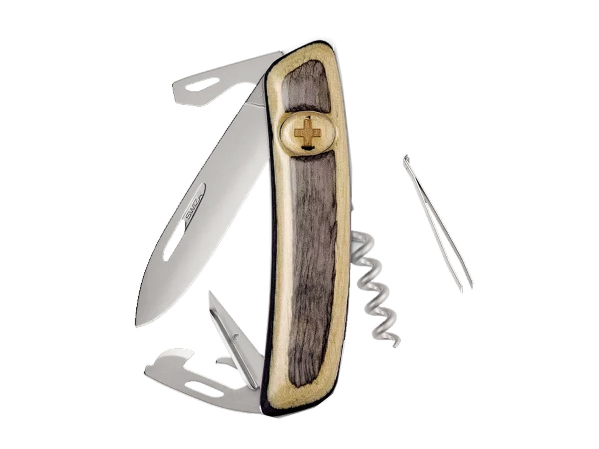 - Finitura satinata opaca di tutte le parti metalliche - Lama con blocco di sicurezza (si sblocca premendo la croce SWIZA) - Lama in acciaio inox 440 - Manico resistente e antigraffio, realizzato in laminato - Lama e attrezzi con unghiatura per facilitare l'apertura con la mano sinistra o destra