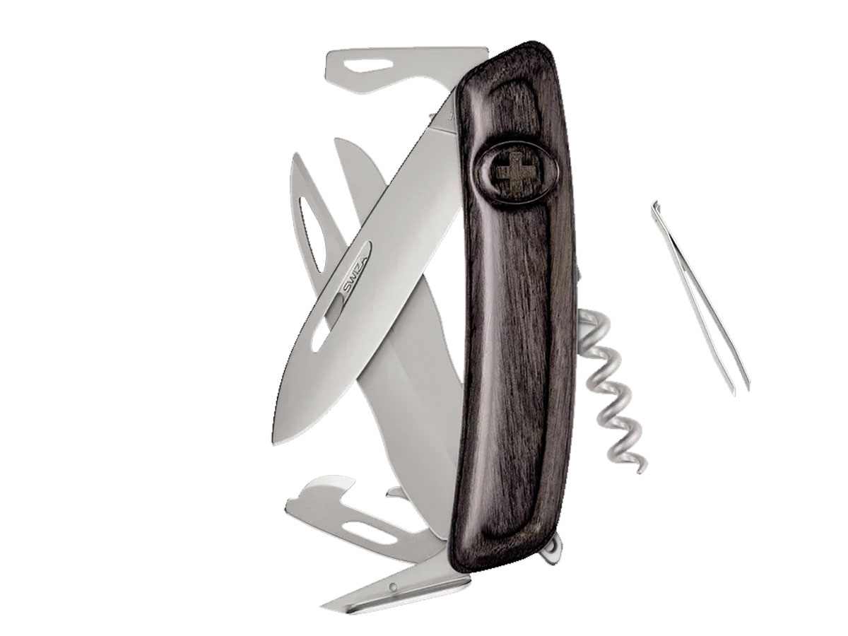 - Finitura satinata opaca di tutte le parti metalliche - Lama con blocco di sicurezza (si sblocca premendo la croce SWIZA) - Lama in acciaio inox 440 - Manico resistente e antigraffio, realizzato in laminato - Lama e attrezzi con unghiatura per facilitare l'apertura con la mano sinistra o destra