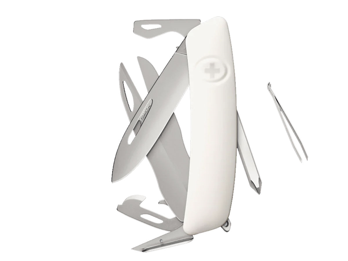 - Finitura satinata opaca di tutte le parti metalliche - Lama con blocco di sicurezza (si sblocca premendo la croce SWIZA) - Lama in acciaio inox 440 - Manico resistente e antigraffio, con una confortevole finitura soft-touch - Lama e attrezzi con unghiatura per facilitare l'apertura con la mano sinistra o destra