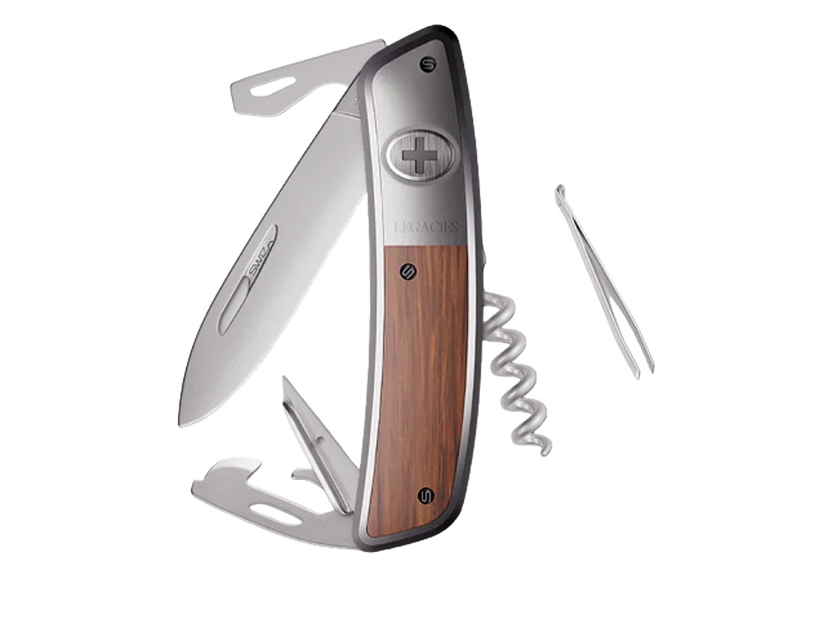 - Finitura satinata opaca di tutte le parti metalliche - Lama con blocco di sicurezza (si sblocca premendo la croce SWIZA) - Lama in acciaio inox 440 - Manico resistente e antigraffio, realizzato in legno di mogano - Lama e attrezzi con unghiatura per facilitare l'apertura con la mano sinistra o destra
